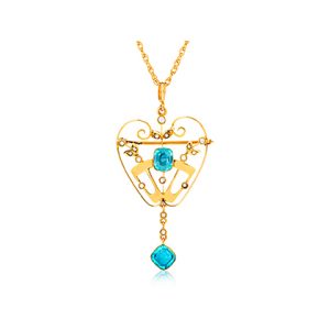 9ct yellow gold Victorian blue zircon and seed pearl pendant