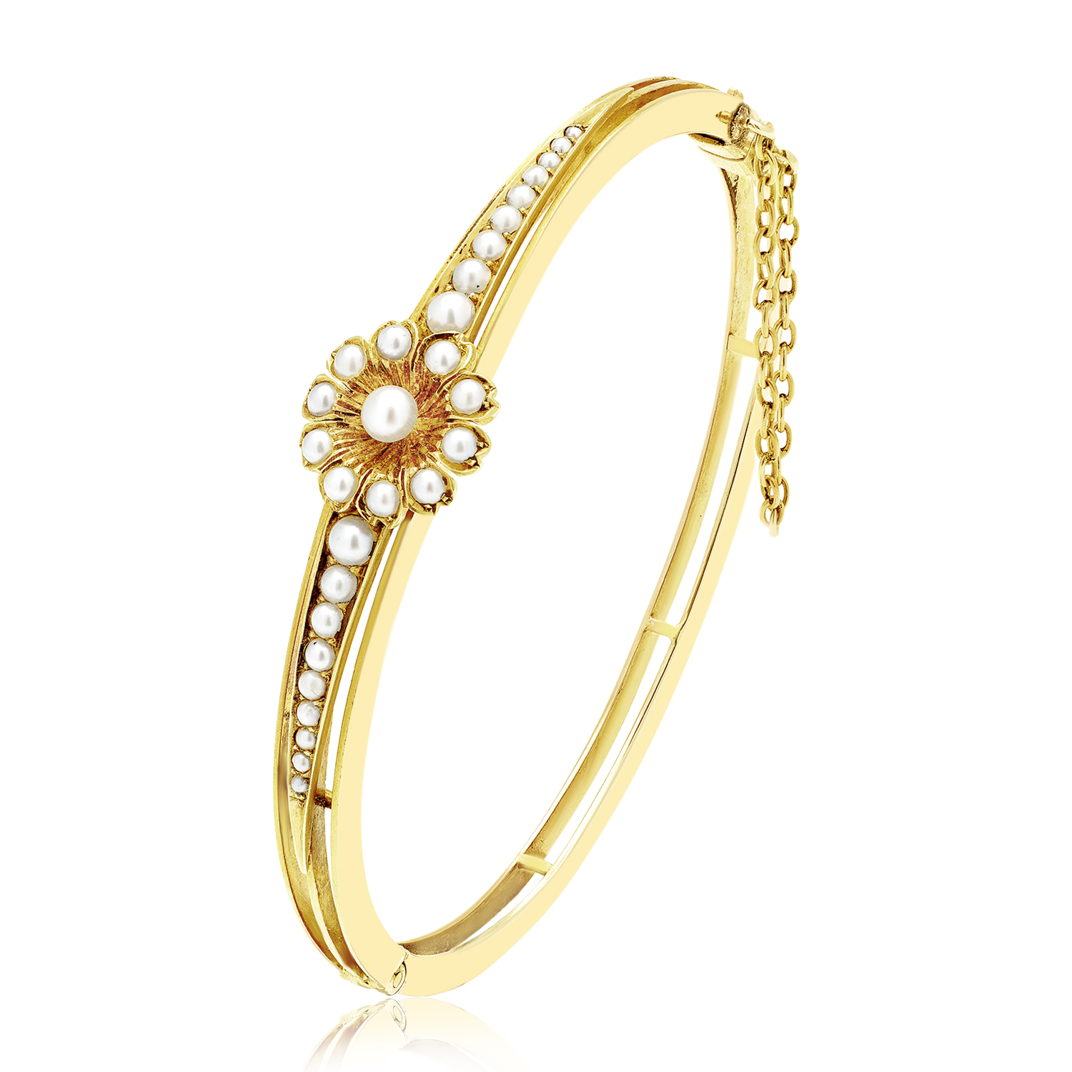 15ct yellow gold Victorian seed pearl horseshoe bangle