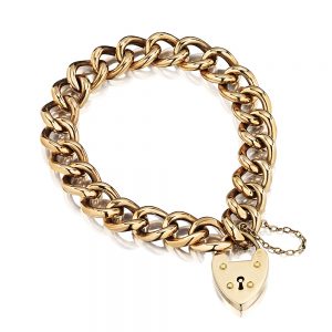 9ct rose gold large hollow curb link bracelet with padlock and safety chain. Fully reconditioned.